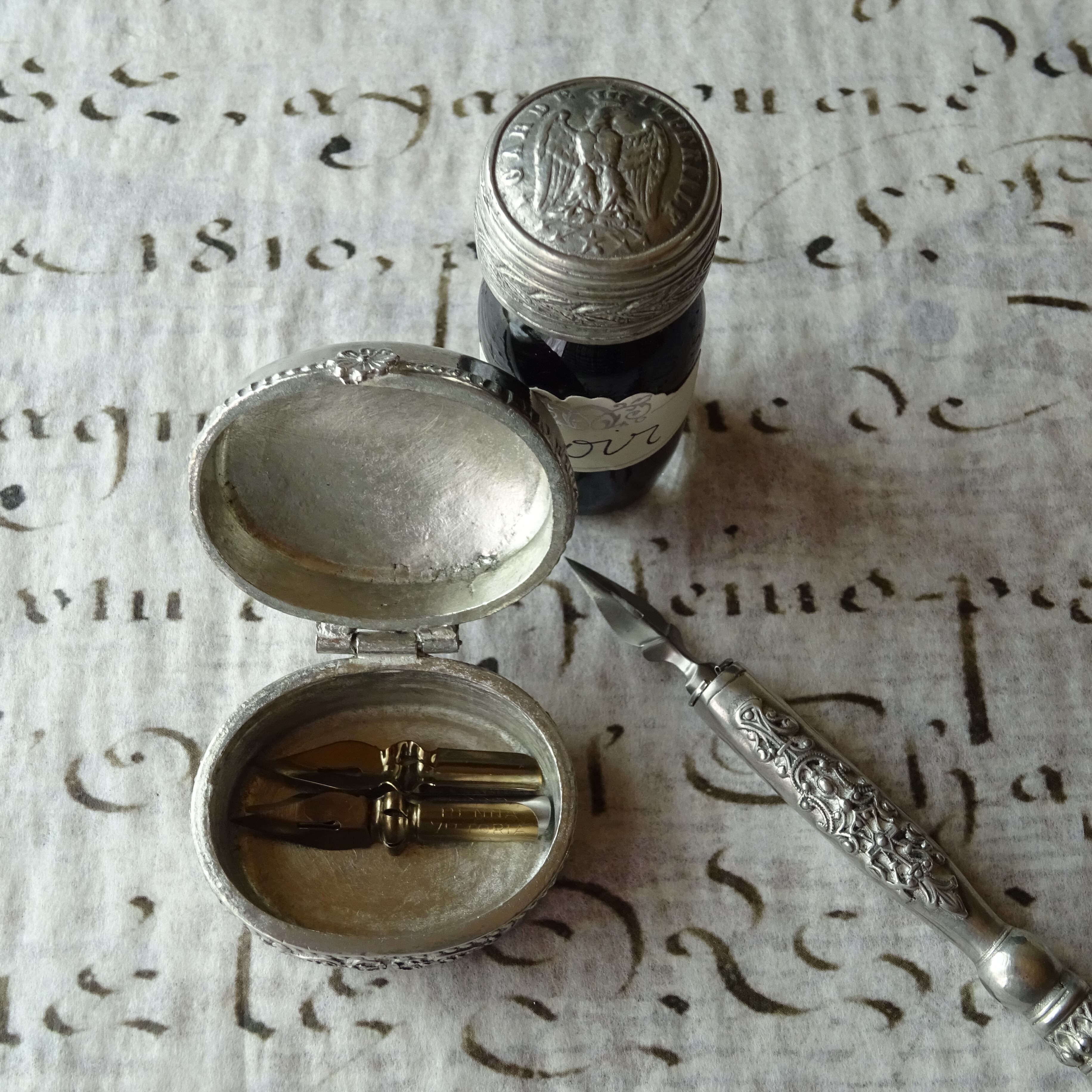 《L'Ecritoire》Boîte de plume en étain