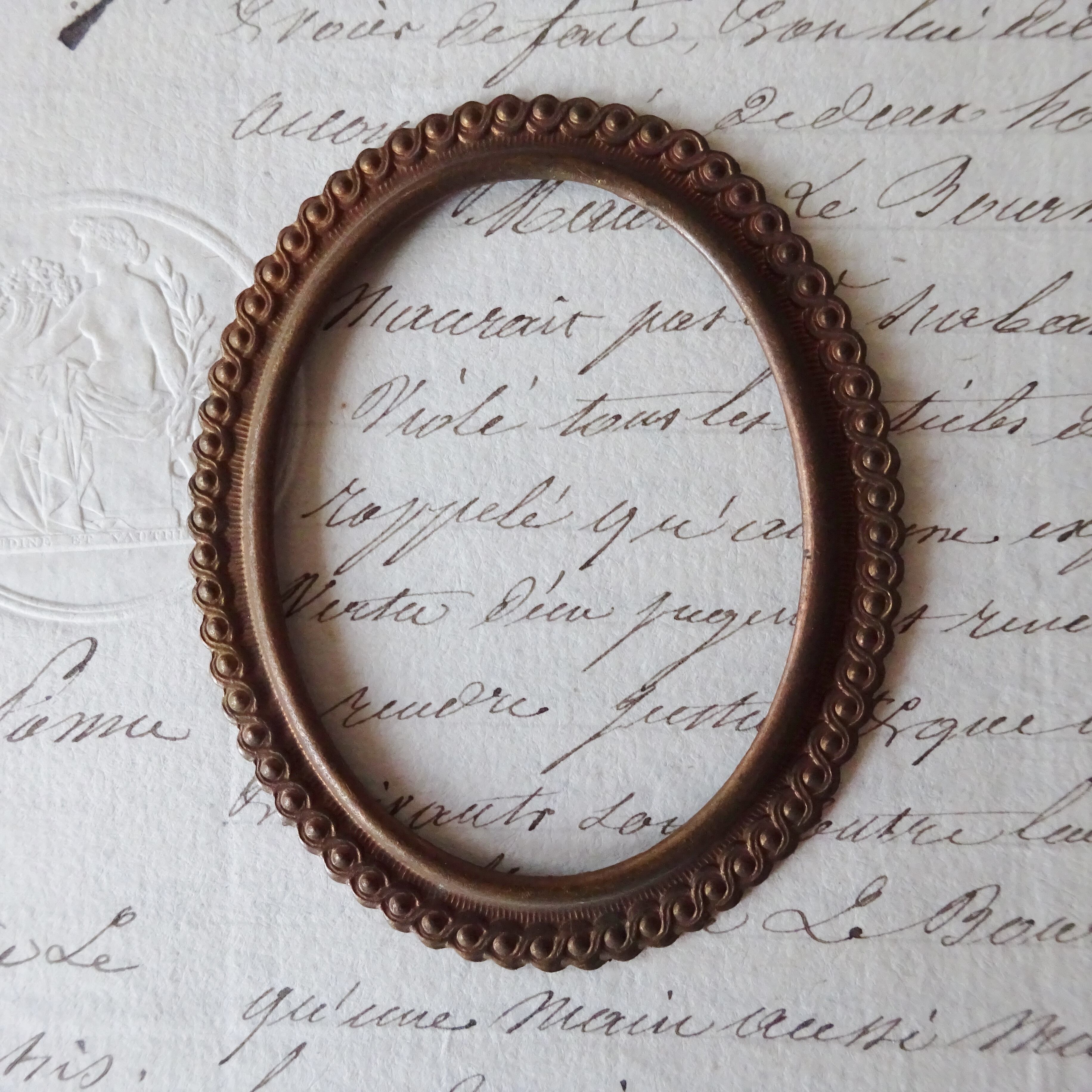 周囲の細工がきれいな楕円形フレームです。